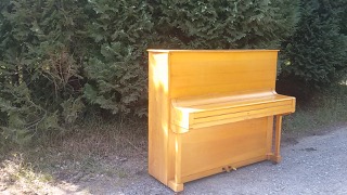Keiner meiner Nachbarn wollte es haben, das Alte, auch nicht geschenkt und umsonst ins Wohnzimmer gebracht. Einige hatten überlegt, aber es scheitert eigentlich immer am Platz. Gerade im Feriengebiet, wo einfach keine 200-qm-Häuser stehen. Also geht es jetzt in die ewigen Jagdgründe ein, nachdem es mich mehr als mein halbes Leben begleitet hat (1994 habe ich es renovieren lassen), und lässt demnächst auf rosa Morgenwolken kleine runde Putten auf seinen Saiten das Harfespielen üben.