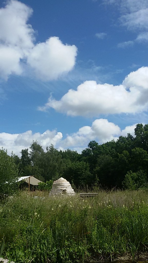 Wir alle haben mit Säge und Beil und Tamper und Klopfer gearbeitet, haben ungeahnte Hilfsmittel kennengelernt wie die „spirit level“ und den Fadenzirkel in der Kuppelmitte (zum Messen, ob jede Runde rund ist oder Klobrille) und Vertrauen in die eigenen Fähigkeiten gewonnen.
