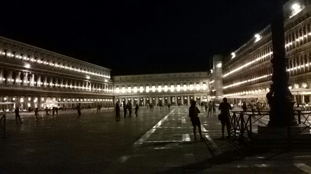 Barbara wollte wissen, wie voll denn der Markusplatz so sei. Ich habe ihr ein paar Abendfotos davon gemacht. Weniger voll als Karneval auf jeden Fall.
