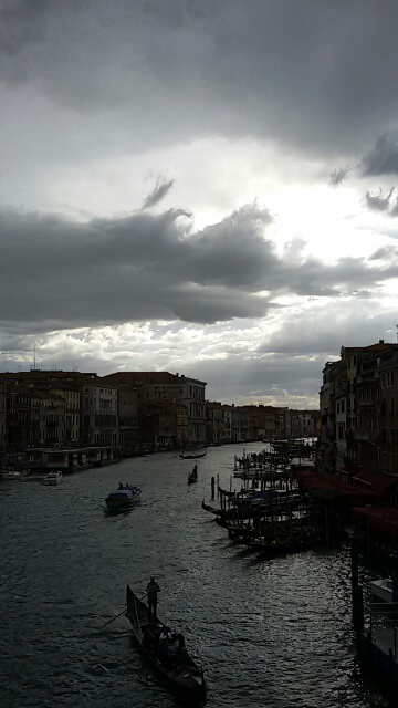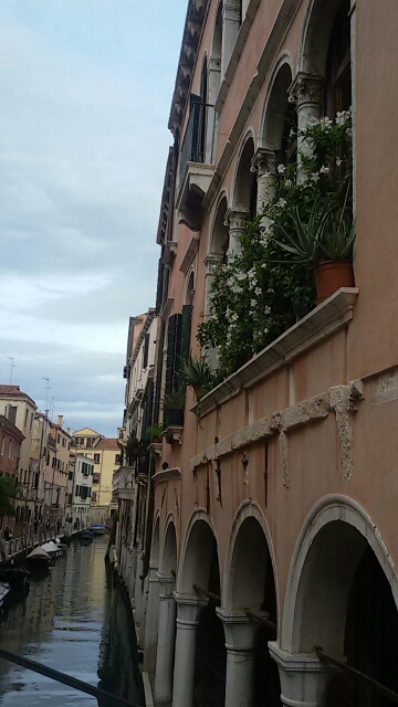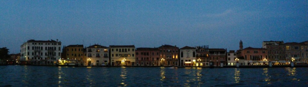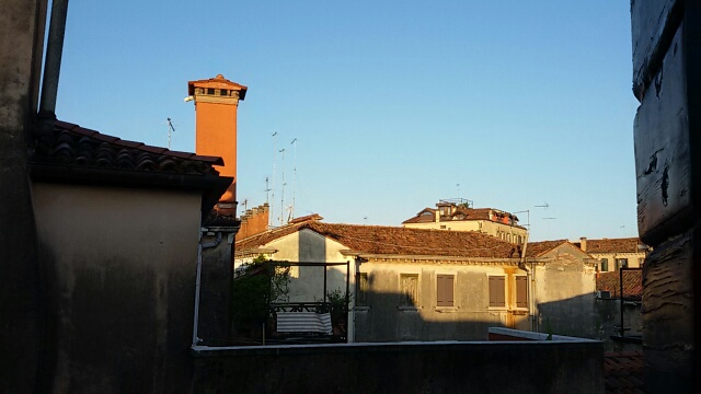 Hallo ihr Lieben, der große Unterschied zwischen Sommer und Winter, wenn man einen Blog über die Erlebnisse in Venedig schreiben will, ist, dass man im Winter freiwillig, weil mit Nase voll vom Frieren, ins heimische Mietzimmer zurückkehrt und dort Zeit zum Schreiben hat. Selbst wenn es auch da nicht furchtbar warm ist. Jetzt hingegen könnte jeder Tag der letzte sein, an dem man gern draußen ist. In der Tat fängt es morgens inzwischen kühl und grau an, und man denkt: „Och schade, das wars mit dem Sommer.“ Und freundlicherweise kann man die Thermoweste dann doch irgendwann wieder in den Rucksack packen und sich draußen in die Sonne setzen. Außer wenn es zwischendurch so niagarafallmäßig gießt wie gestern Abend. Und da ist dann einfach wenig Gelegenheit zum Schreiben, außer man nimmt den Computer mit und setzt sich auf die Schulterrasse zwischen Oleander und Weintrauben.