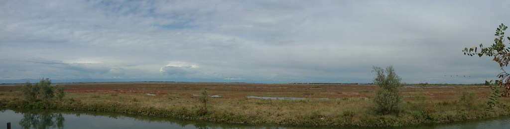 Zum Glück habe ich gestern noch den vom letzten Wochenende verschobenen Ausflug nach Lio Piccolo gemacht, ihr erinnert euch, die Cavallino-Halbinsel nördlich vom Lido mit ihrer angeblich schönen Landschaft, die ich selbst mal sehen wollte. Cavallino heißt übrigens Pferdchen (Cavallo – Pferd, -ino verkleinert alles, siehe Violino, Bardolino, Cammino…) Sinnlose Anmerkung: -etto verkleinert auch alles (siehe Canaletto, Tintoretto, Geppetto). Also ist auch ein Cavaletto ein Pferdchen. Meint aber in dem Fall keine Halbinsel, sondern nur einen Notenständer.