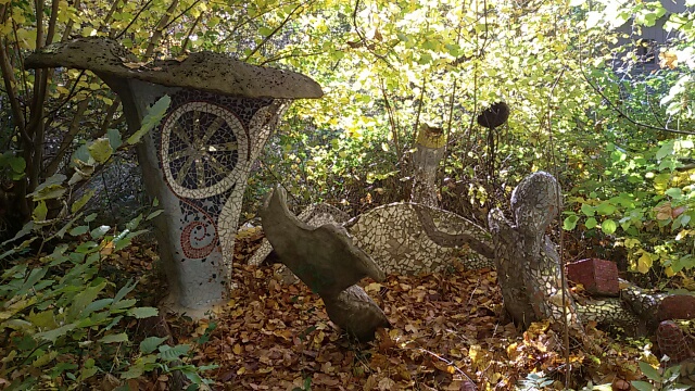 An den Fliesenbruchmosaiken links hab ich vor 11 Jahren mitgebaut! Sie sind immer noch im Garten von Haus Buchenried zu sehen.