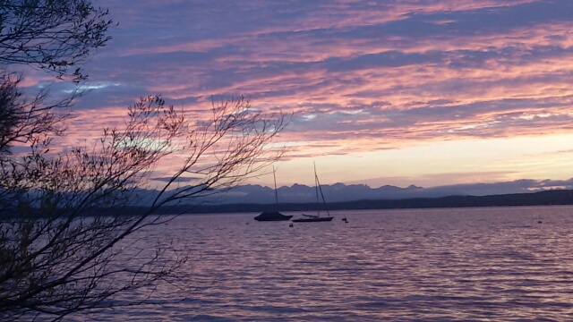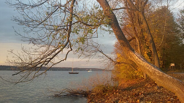 Mir ist immer noch völlig schaukelig in den Knochen, weil es heute so gewogt hat auf den Bootsfahrten. Diese Boote sind noch aus den Dreißigerjahren des vorigen Jahrhunderts, habe ich gehört, und sie knattern, qualmen und stinken zum Gotterbarmen. Wenn man hinten draußen sitzt, um Frischluft zu haben, sieht man die kohlschwarzen Wolken aus dem Schiffsauspuff wehen und Richtung Ufer ziehen. Und die Schraube röhrt und rumpelt und tobt unterm Schiff herum, dass ein großer, selbst eher einschüchternder Hund, der an Bord war, völlig panisch wurde und seinem auch nicht viel größeren Besitzer auf den Schoß stieg.