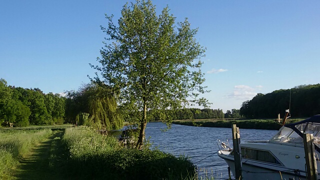 Der Plan war ja, vom Tanzkurs in Springe zur Celler Schule nach Rendsburg zu wandern. Schon, um die beiden Orte miteinander zu verbinden – wo wir schon mit der Celler Schule aus Springe weg mussten. Ein einfacher Blick auf die Karte zeigte dann die Kombination von sechs Wandertagen und 280 Kilometern, was auch Hagemannscher Berufsoptimismus nicht unter einen Hut kriegte. Ich ließ mich also am Ende des Tanzseminars mit Luisa zusammen bis kurz vor Hamburg mitnehmen und dann von Luisa leicht überreden, am Montag erst noch mal zusammen auf dem neu ausgeschilderten Rundwanderweg rund um Hamburg im Grünen zu wandern. Was klasse losgeht, mit Bootsfahrt nach Teufelsbrück und dann tatsächlich ziemlich viele grüne Abschnitte hat, dafür, dass es Großstadt ist. Einige berückend schön. Andere mit etlichen großen Straßen und Einkaufszentren drin, was nicht schön ist, aber natürlich praktisch, wenn man Hunger hat. Sage ich jetzt aus der Weisheit, die sich mir im ländlichen Schleswig-Holstein aufdrängt, wo es kein bisschen mehr Läden gibt als im ländlichen Südfrankreich und die Frage des Hungers beim Wandern wieder anfängt, ins Gewicht zu fallen.
